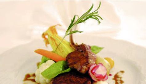 | Rosa gebratenes Rinderfilet mit Ochsenschwanz-Ragout, gebackenen Kartoffeln und grüner Pfeffersauce | Euro 41.90 |